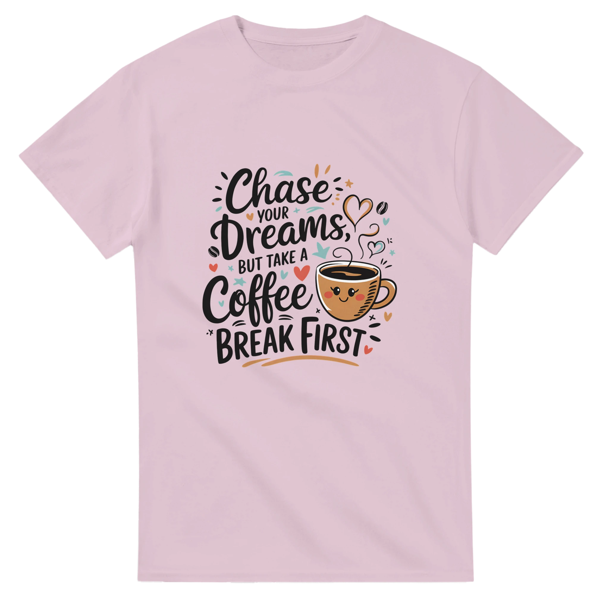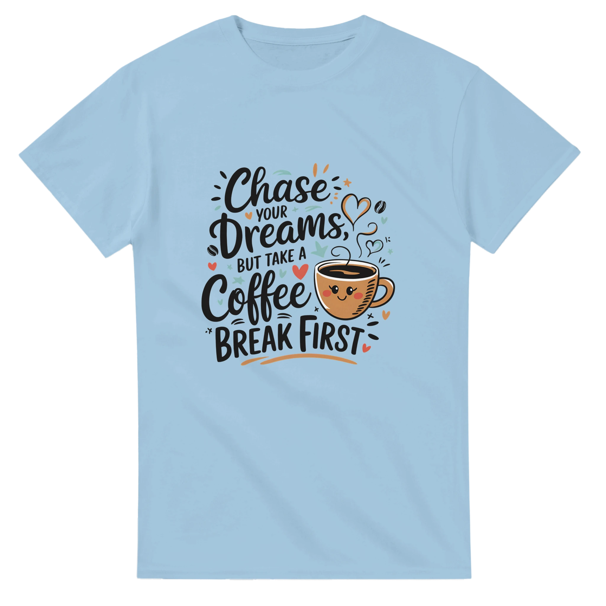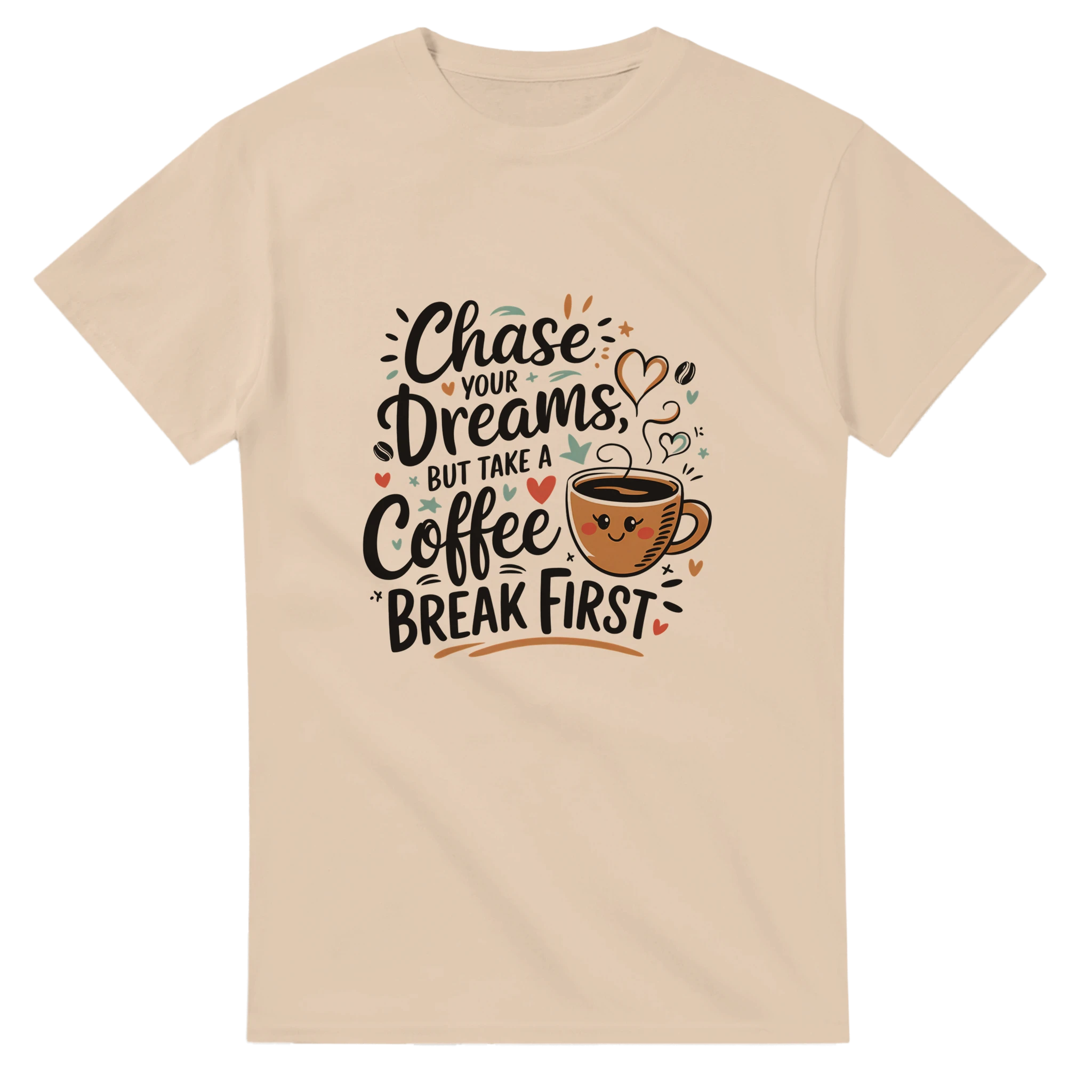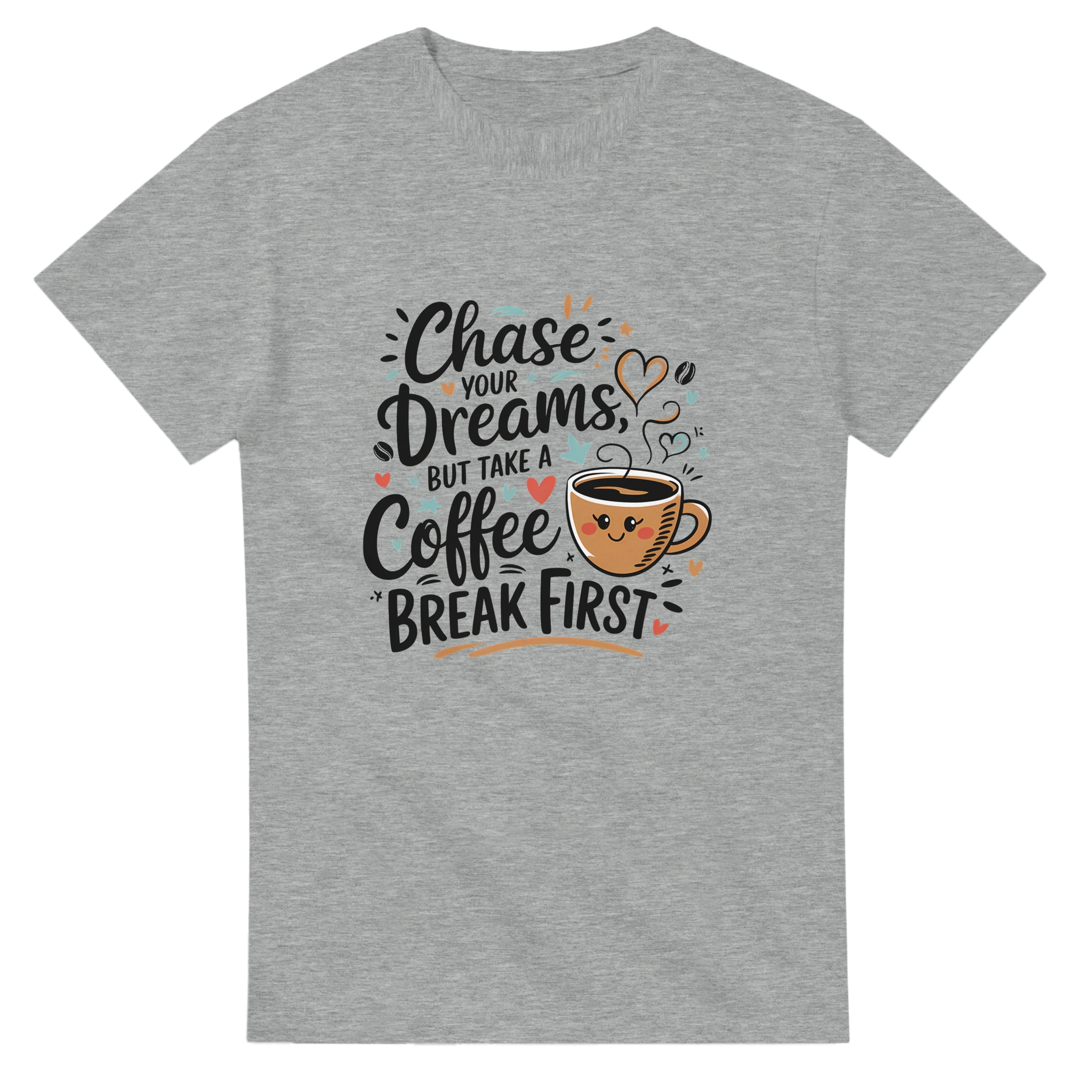 Embrace your ambition with our “Chase Your Dreams But Take A Coffee Break First” t-shirt! Crafted from heavyweight cotton, this durable tee is designed for comfort and style, making it the perfect addition to your casual wardrobe. With a classic relaxed fit, it’s an everyday staple that pairs seamlessly with jeans, shorts, or joggers.